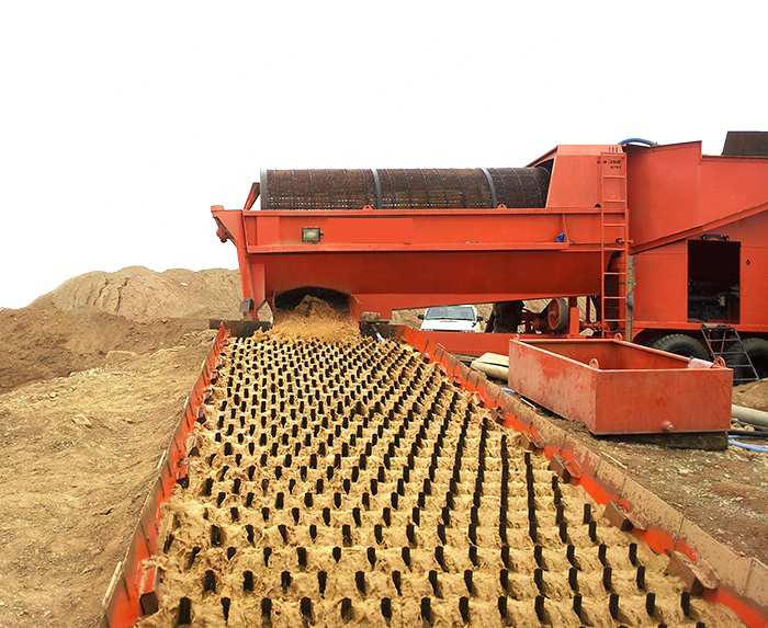 移動方便,處理量大,一體化設(shè)計,簡單。本設(shè)備可以根據(jù)客戶的要求單獨加工,或根據(jù)原礦類型及砂金顆粒類型配備鼓動溜槽、固定溜槽、蠕動溜槽、水套離心機等設(shè)備收集沙金。